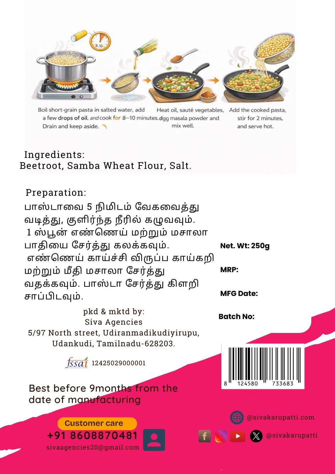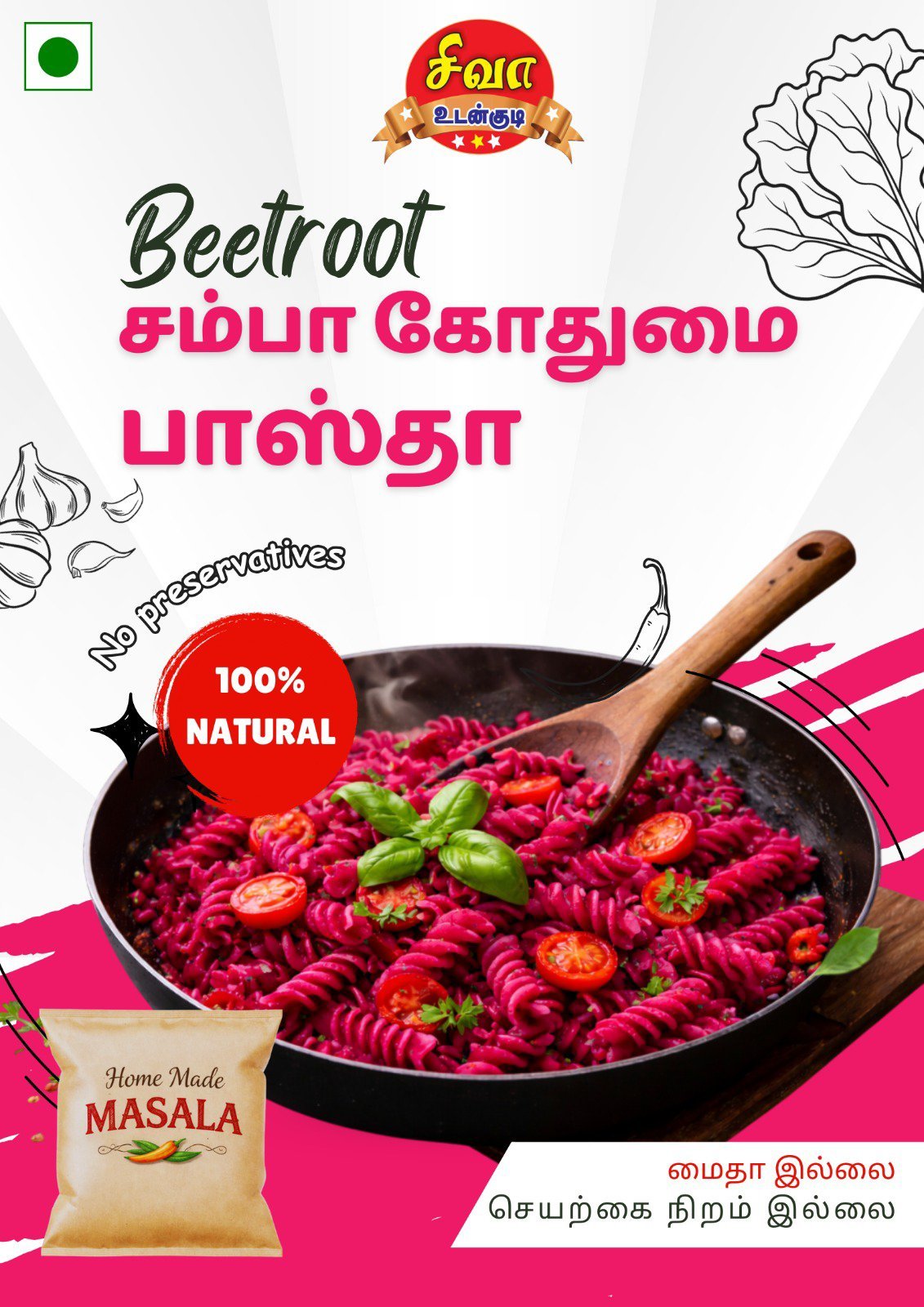 பாஸ்தா 5நிமிடம் வேகவைத்து வடித்து,குளிர்ந்த நீரில் கழுவவும் 1 ஸ்பூன் எண்ணெய் மற்றும் மசாலா பாதியை சேர்த்து கலக்கவும் என்னை காய்ச்சி விருப்ப காய்கறி மற்றும் மீதி மசாலாவை சேர்த்து வதக்கவும். பாஸ்தா சேர்த்து கிளறி சாப்பிடவும்.