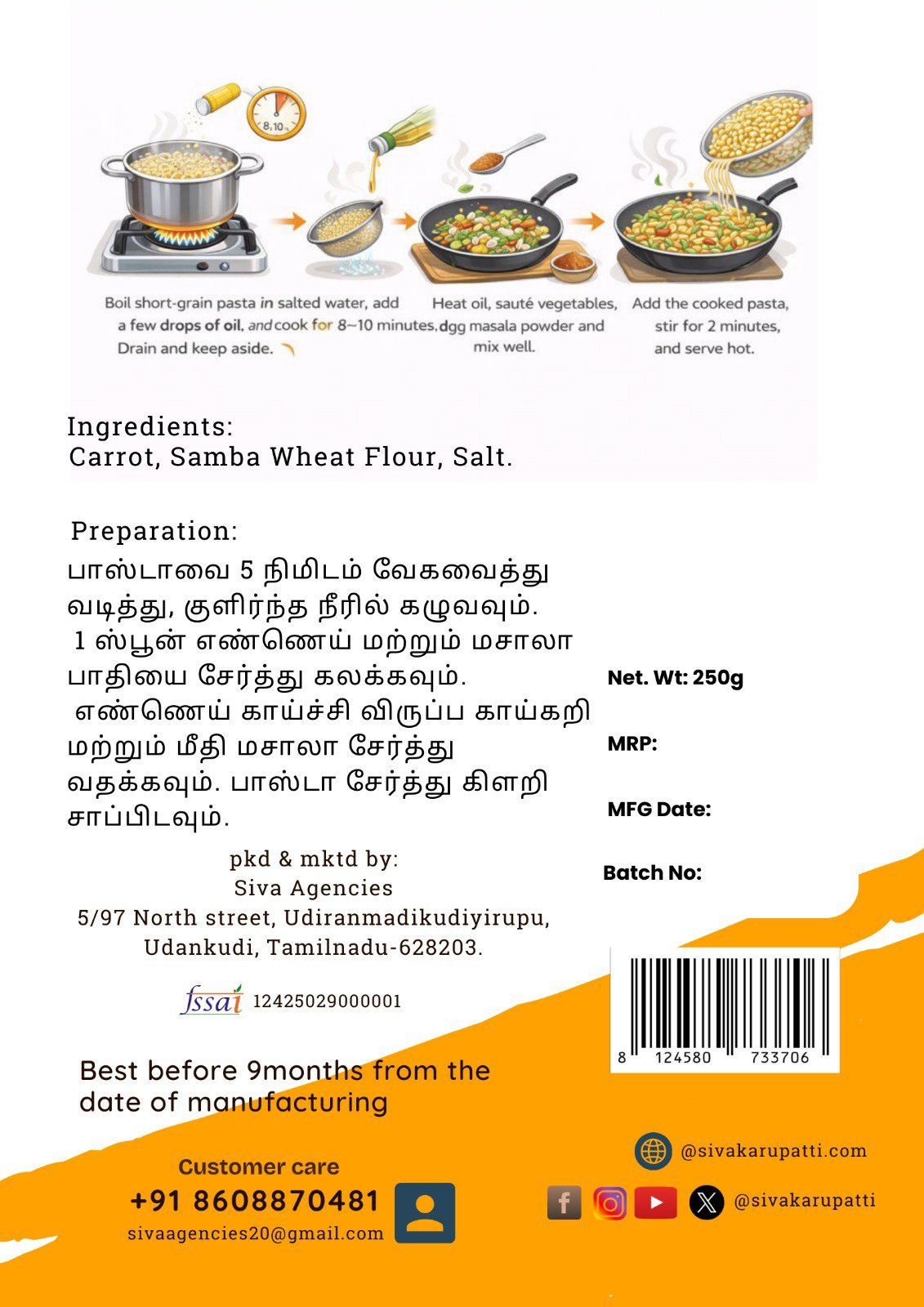 Carrot -சம்பா கோதுமை பாஸ்தா 250கிராம்